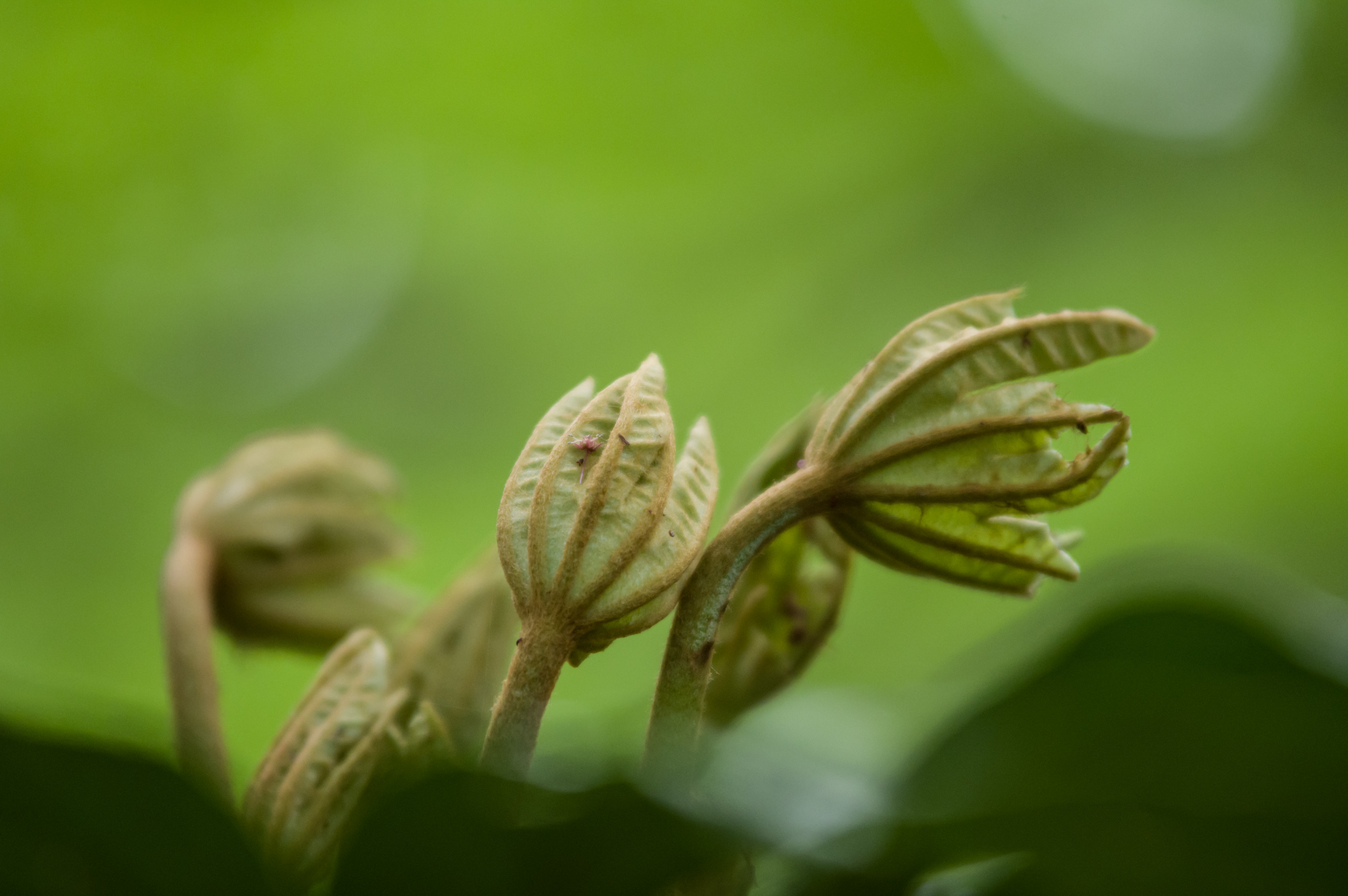 新緑を背に