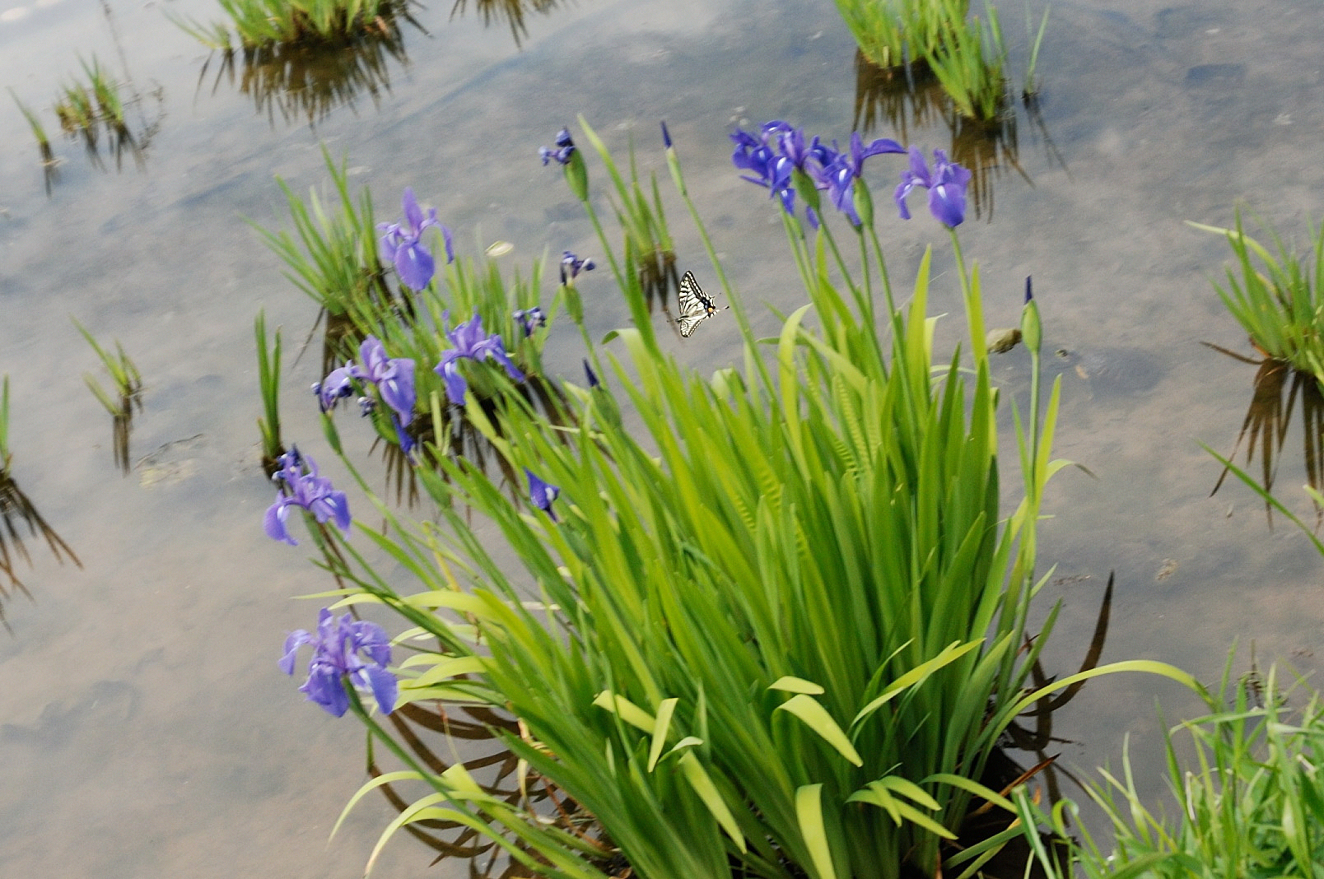 花ショウブにアゲハチョウ