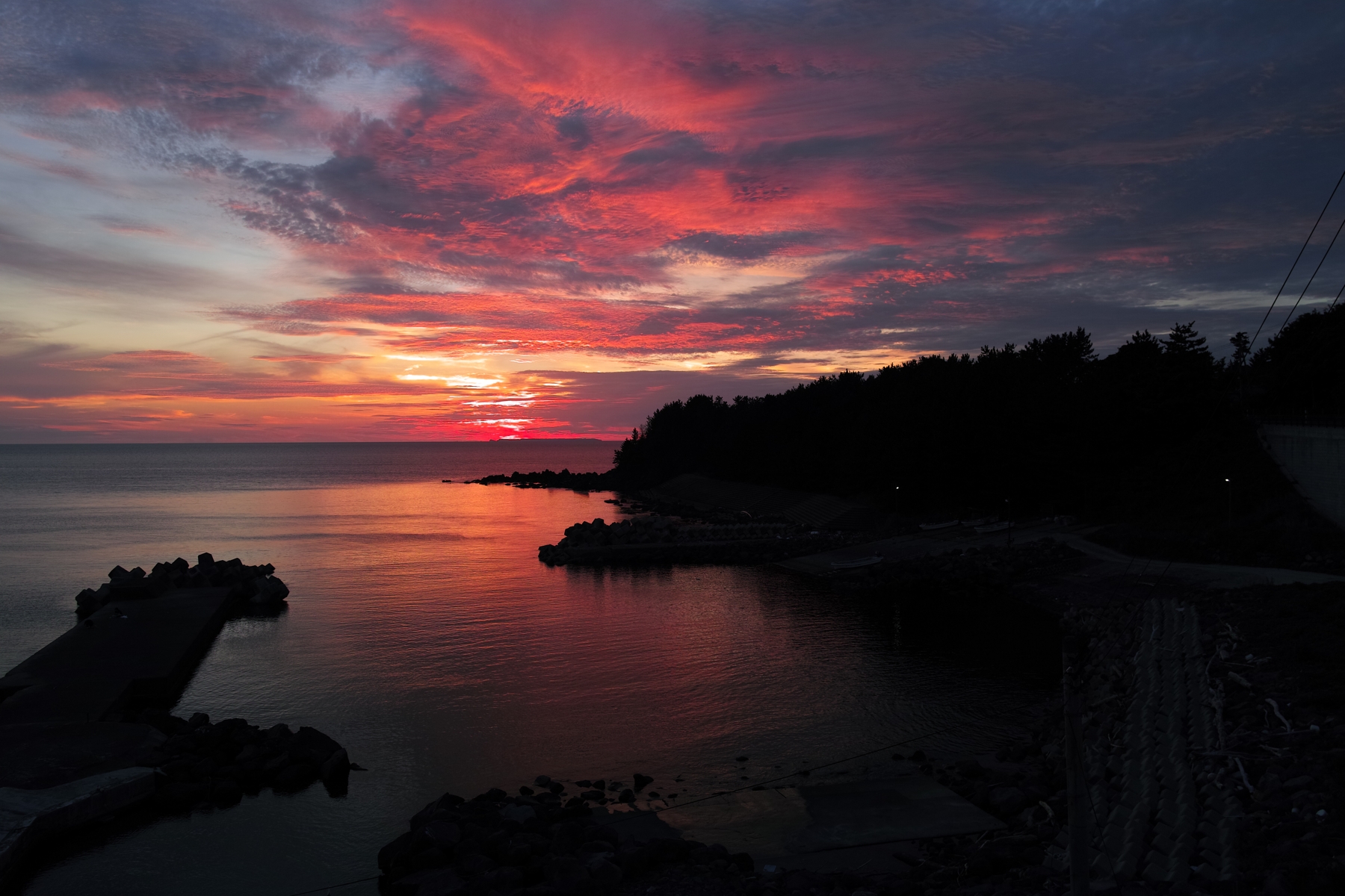 小さな漁港の夕焼け