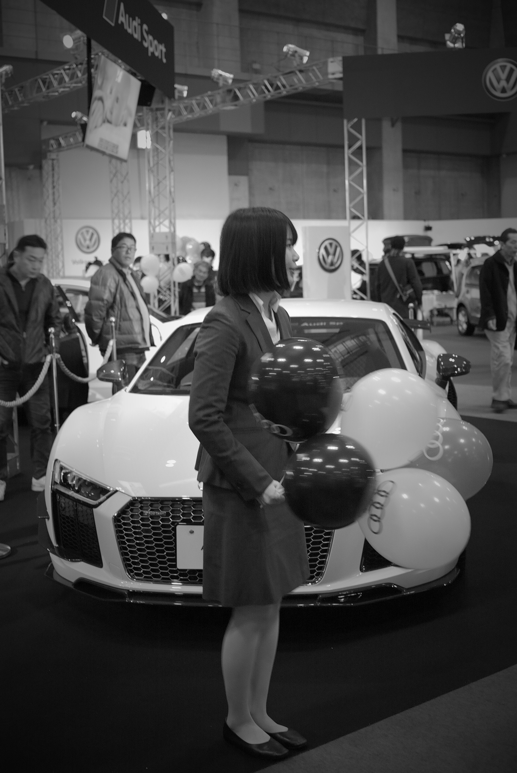 黒白写真 輸入車ショー1
