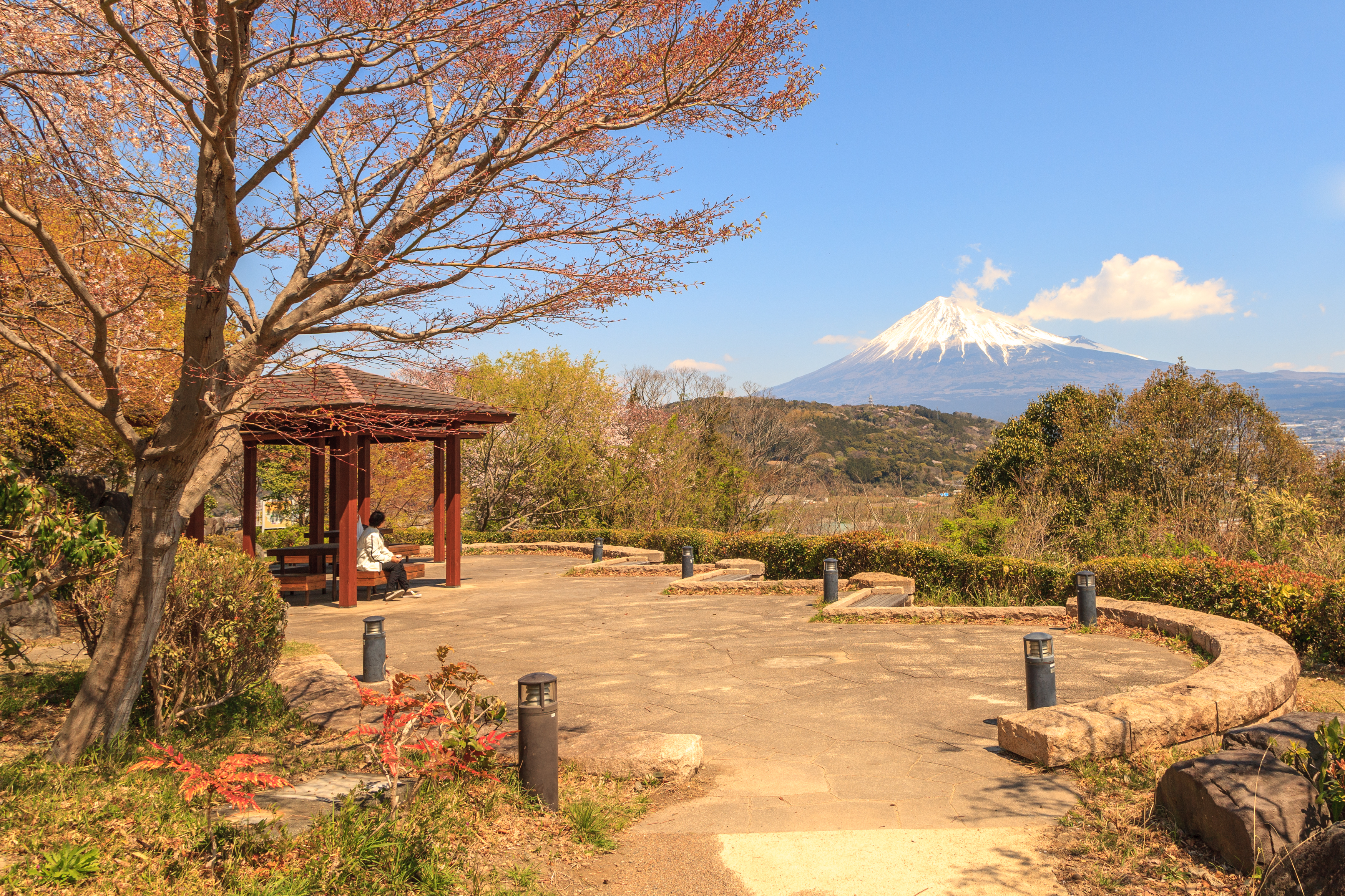東屋にて富士を楽しむ