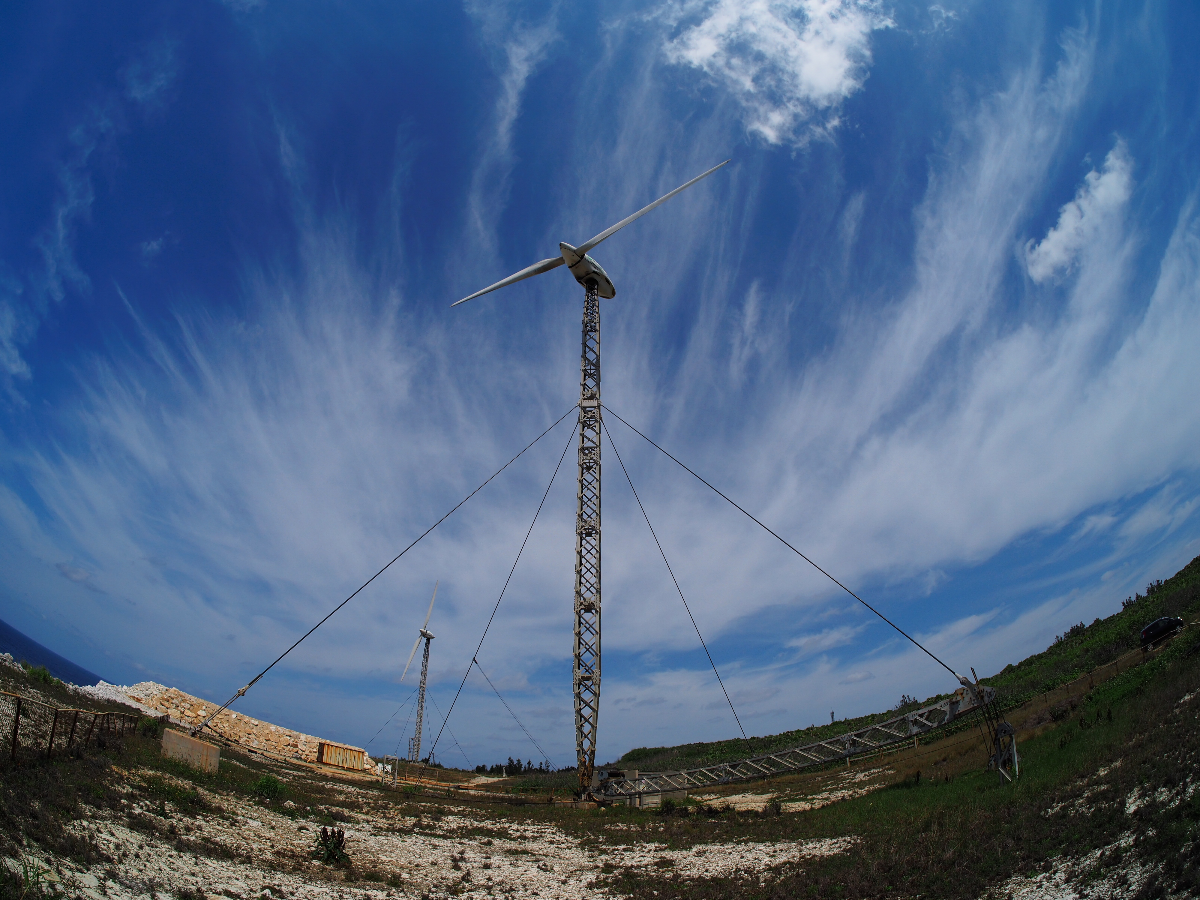 【花・空のある写真】可倒式風力発電機