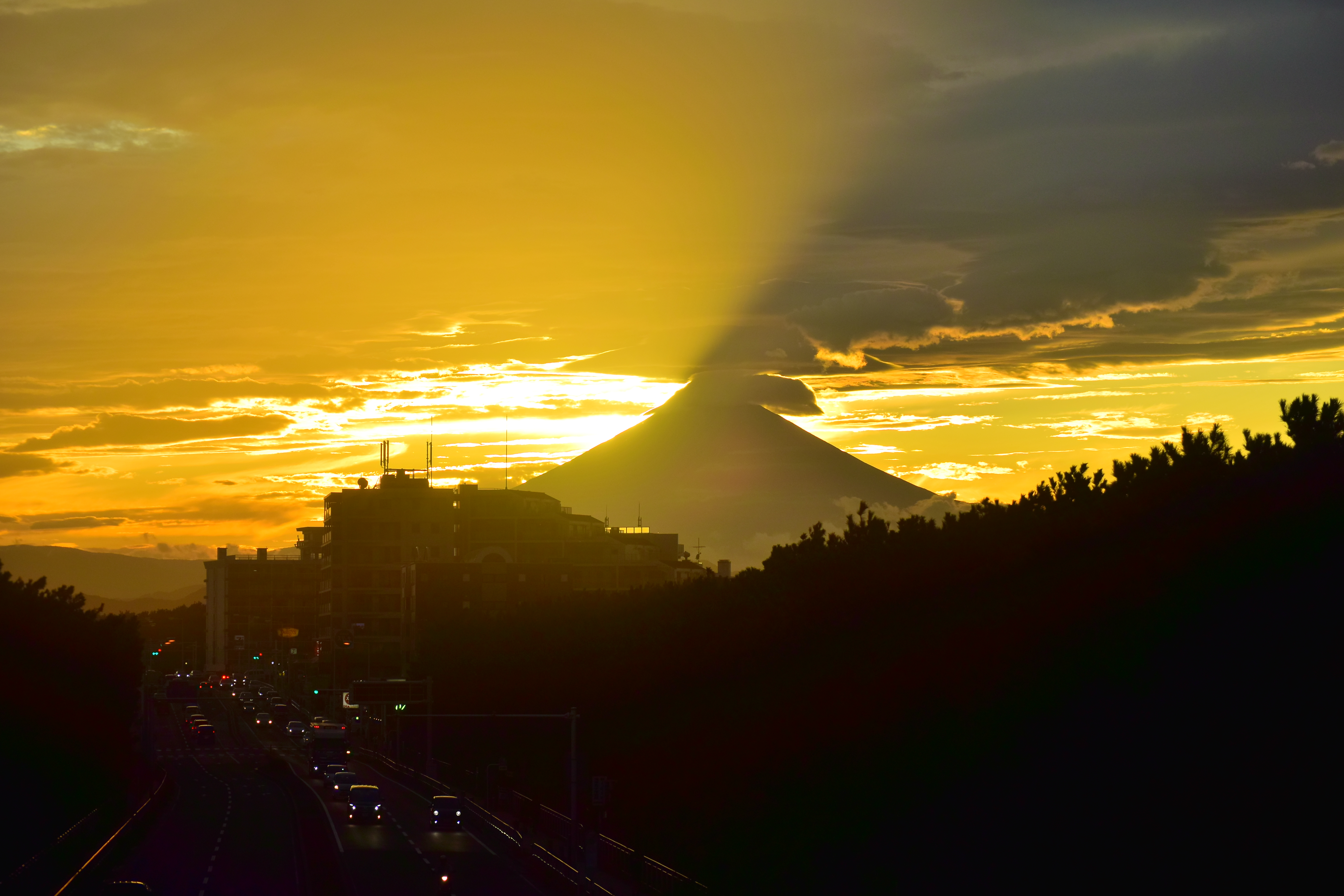 富士山噴火。
