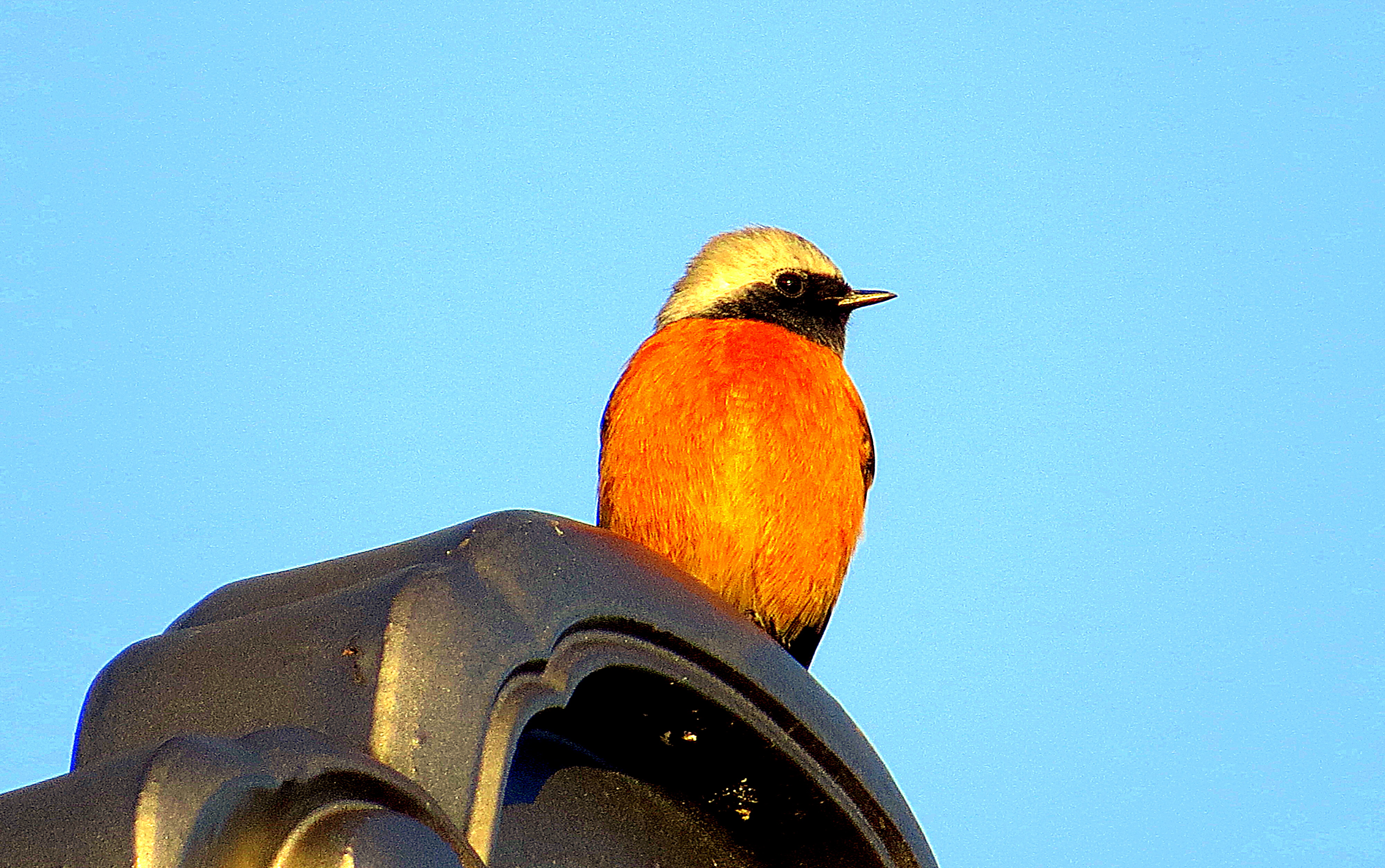 屋根の上のジョウビタキ