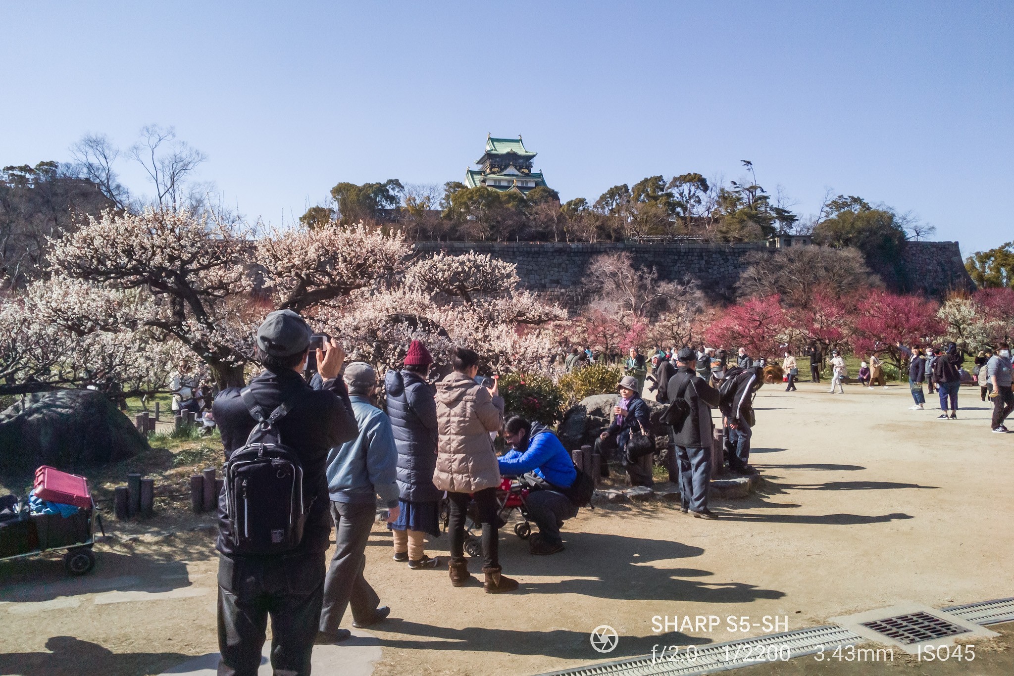 大阪城梅林景色。