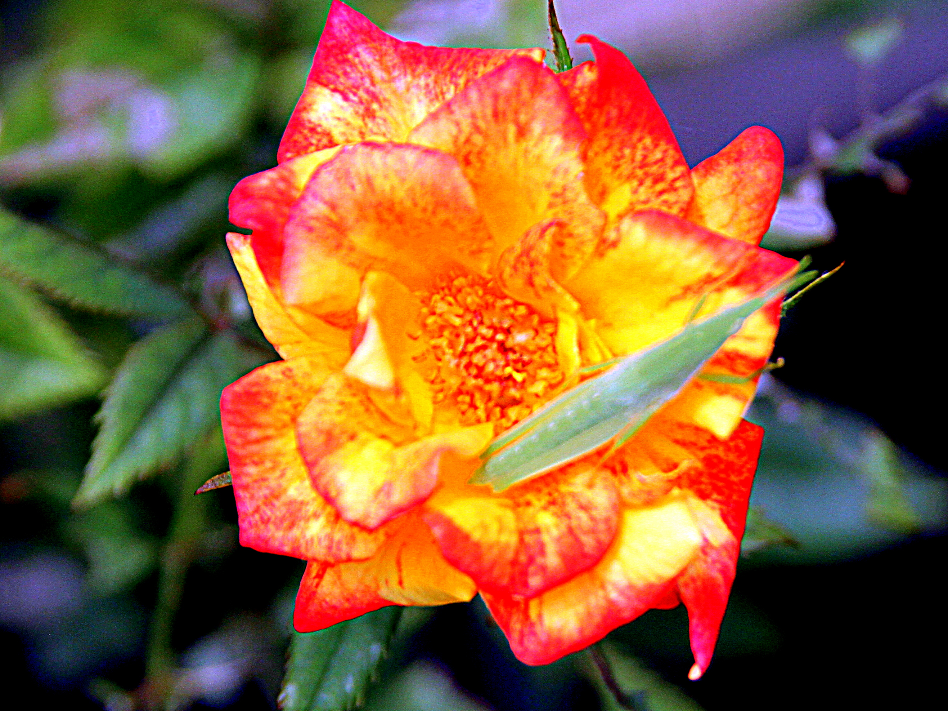 ミニバラにバッタが・・