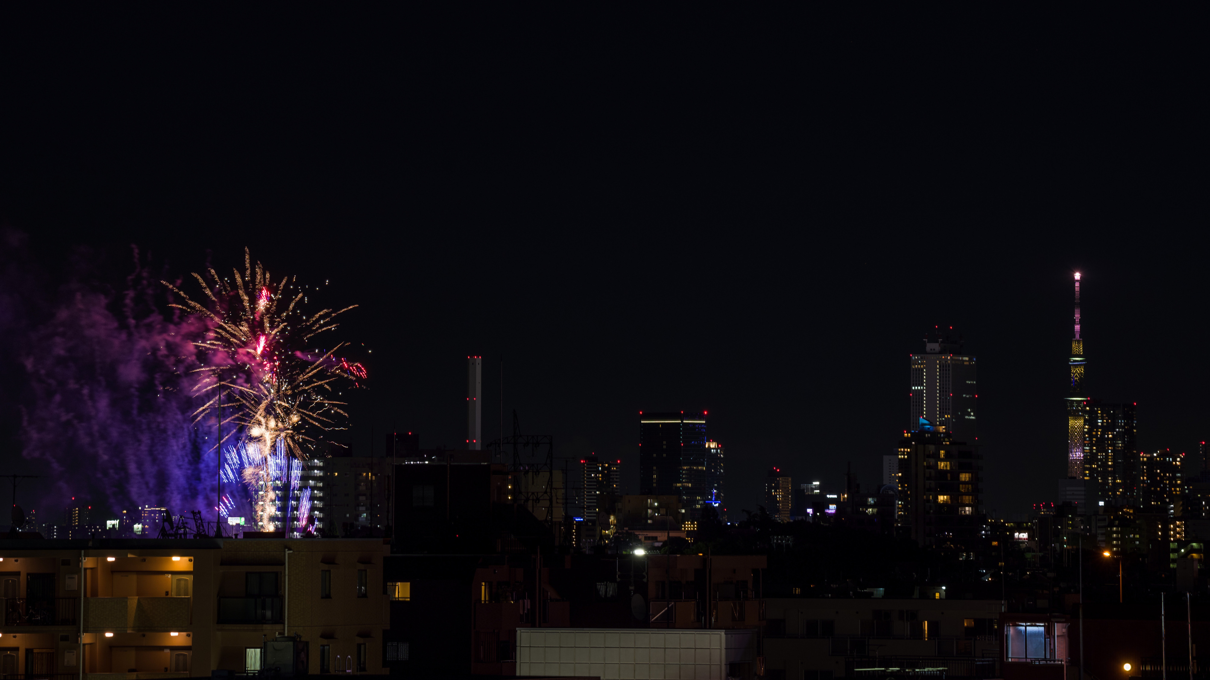 としまえん花火とスカイツリー