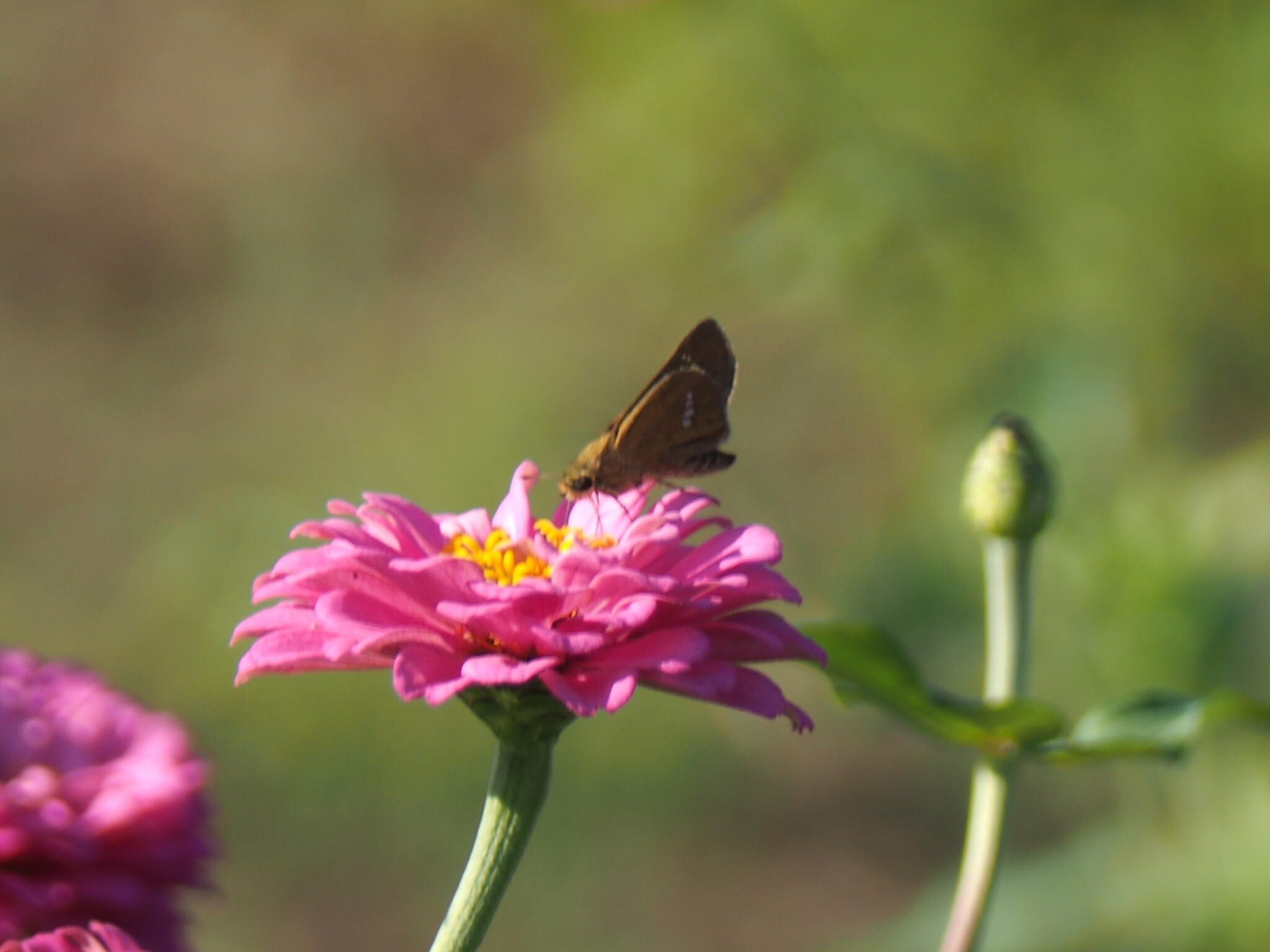 百日草にセセリチョウが留まりました。