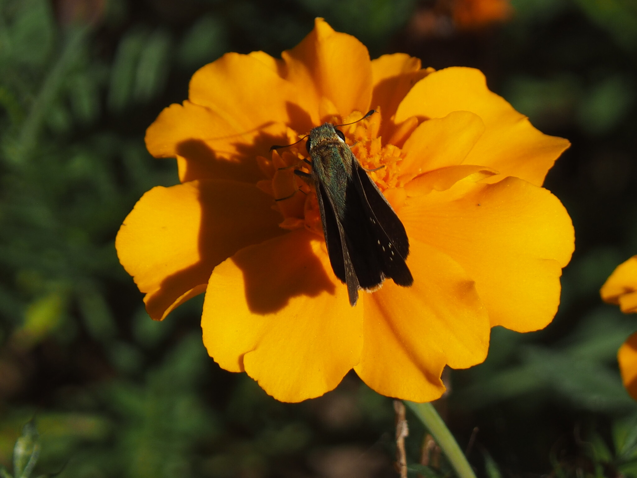 マリンゴールドにセセリ蝶が留まりました。