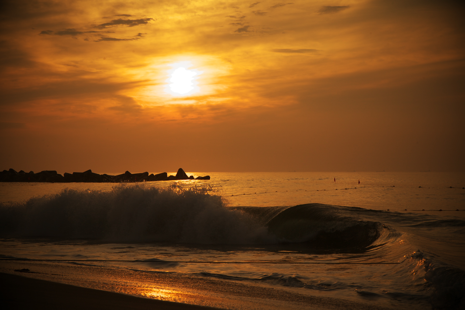 朝焼けの海